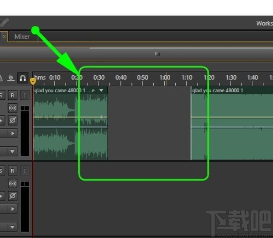 8.点击delete按钮进行删除的话音频中间会留空一个片段的位置,如下图中所示。