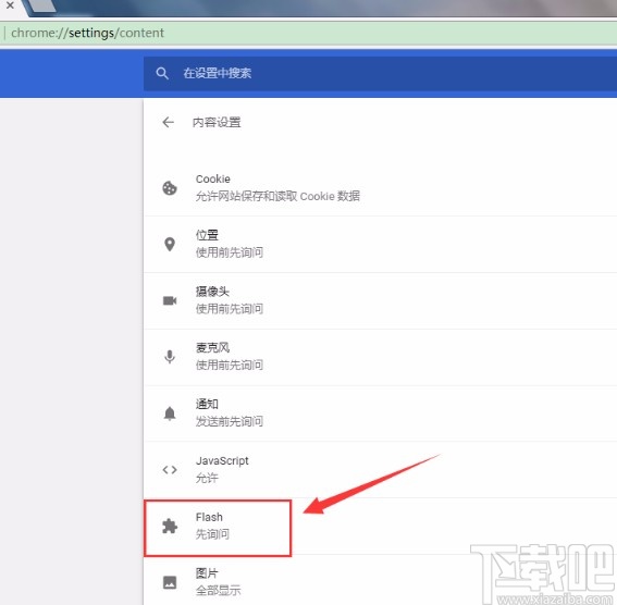 5.进入到内容设置模块之后在其中我们就可以看到flash这个选项了,之后需要点击它进入到设置界面。