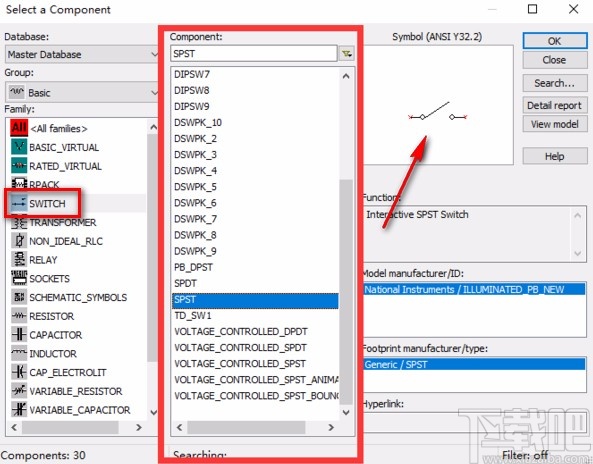 3.选择Basic之后,在它的下方选择SWITCH这个选项,然后在右边的Component这个选项列表下方就会看到很多种开关,点击其中一个开关,在右上角可以预览开关展示。