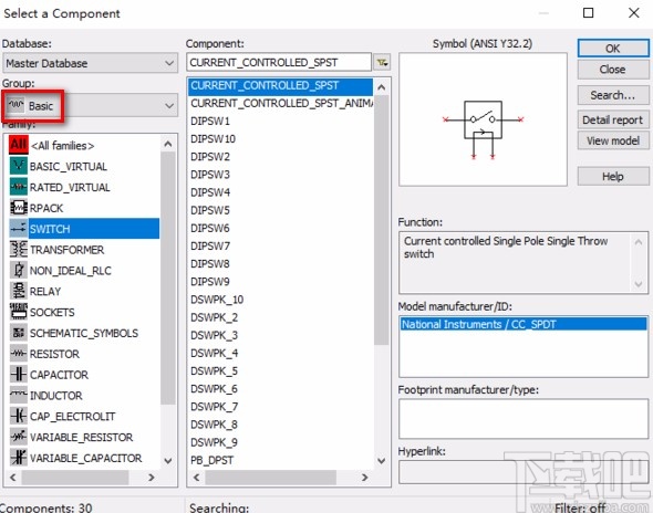 2.点击打开Select a Component(选择元器件)界面之后,我们将组别选择切换Basic这个选项,然后就会弹出一个窗口。