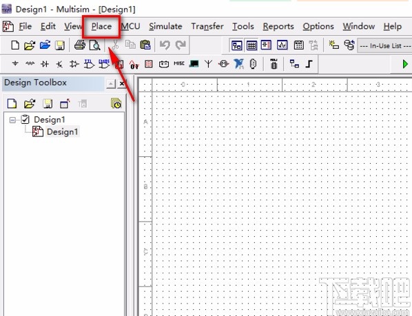 1.首先第一步我们打开软件之后,在软件界面上方找到“Place”选项,点击之后在出现的选项中找到选择Component元器件选项并点击。
