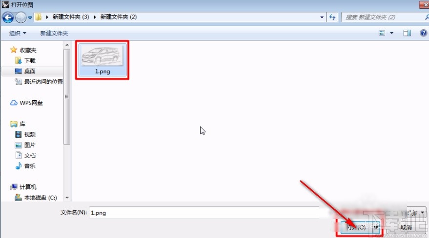 2.点击放置之后会出现一个选择文件的界面,我们在选择文件的界面中,找到想要设置为背景图的图片,然后点击右下角的打开按钮。