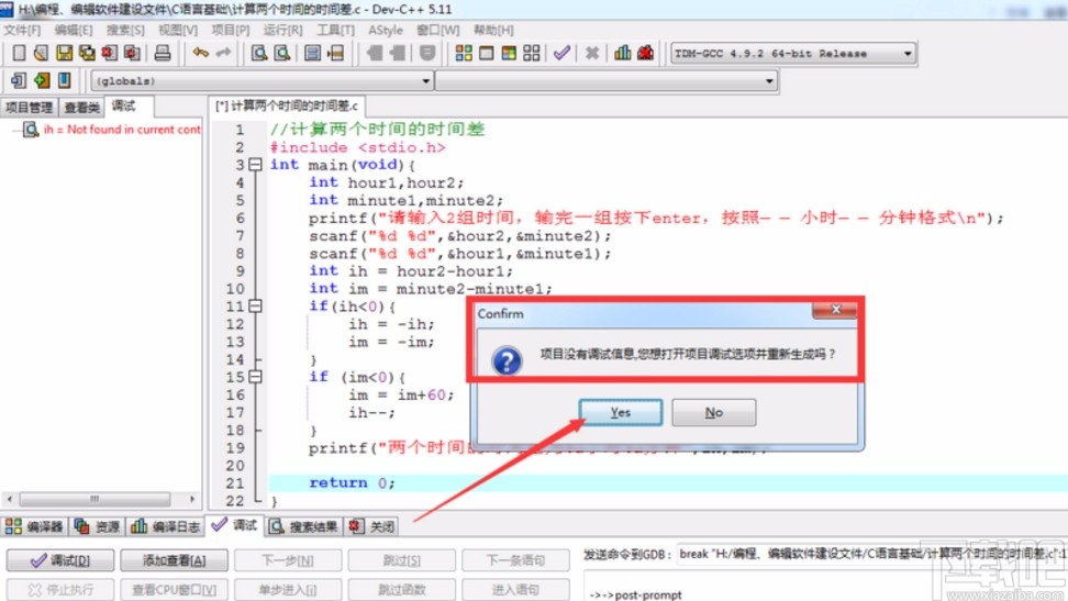 使用上述教程中的操作方法我们就可以在devc++软件中调试代码了,有需要的朋友赶紧试一试这个方法吧,希望这篇方法教程能够帮助到大家。