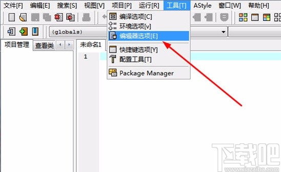 2.点击这个工具选项之后,下一步在出现的选项列表中需要找到“编辑器选项”这个选项,点击之后进入到编辑器选项设置界面。