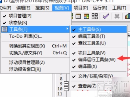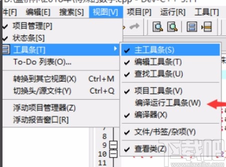 4.点击勾选上编译运行工具条这个选项之后,我们就可以看到界面中的这个选项左边有一个小勾图标了,表示选中状态。