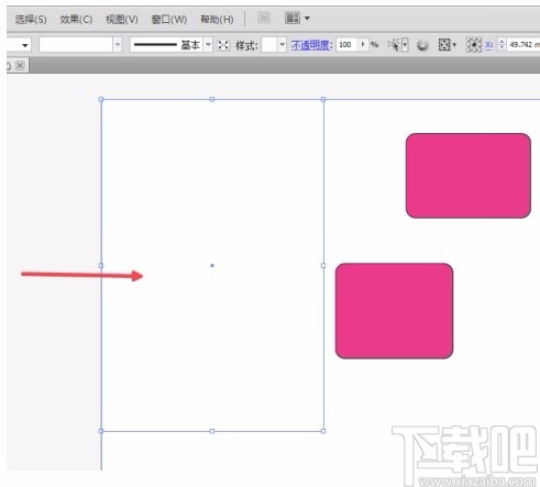 5.接下来将鼠标移动到画布上,先用鼠标点击画布中最外面的空白区域,再按住Shift键不动,用鼠标点击刚刚选中的矩形区域。