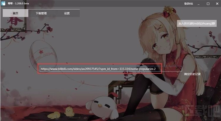 2.接着将哔哩哔哩唧唧软件打开,我们在软件界面上的文本框中输入刚刚复制的视频地址,再点击键盘上的Enter键,软件就会自动识别视频地址。