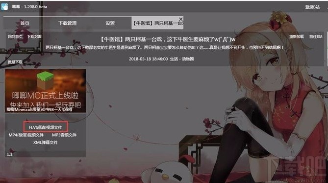 3.视频地址识别成功后,在软件界面上可以看到视频的相关信息;在界面左侧找到“FLV(超清)视频文件”并点击,就可以马上将视频下载下来了。
