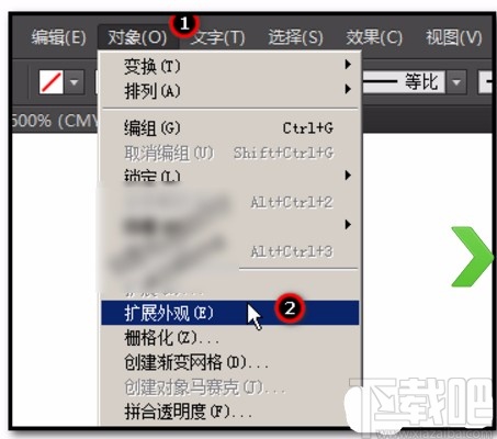 5.之后下一步我们可以选中这条曲线,然后点击上方的对象选项,在出现的菜单中选择扩展外观这个选项。