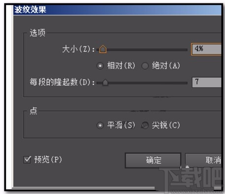 3.点击选择波纹效果之后,会出现下图所示的界面,我们需要对波纹的一些参数进行设置,设置之后点击确定按钮即可。