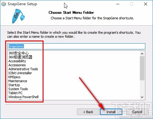 8.最后就来到了选择开始菜单文件夹的界面,会自动生成一个软件的开始菜单文件夹,然后我们点击Install这个安装按钮即可。