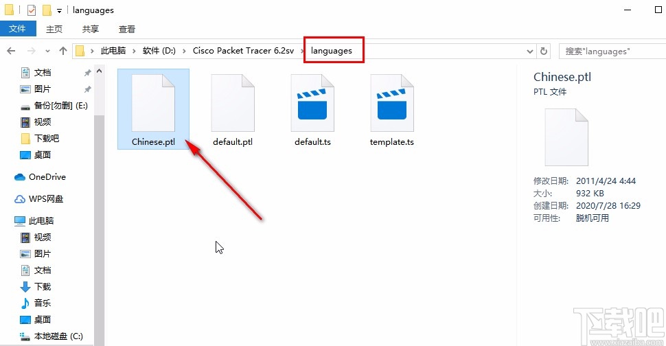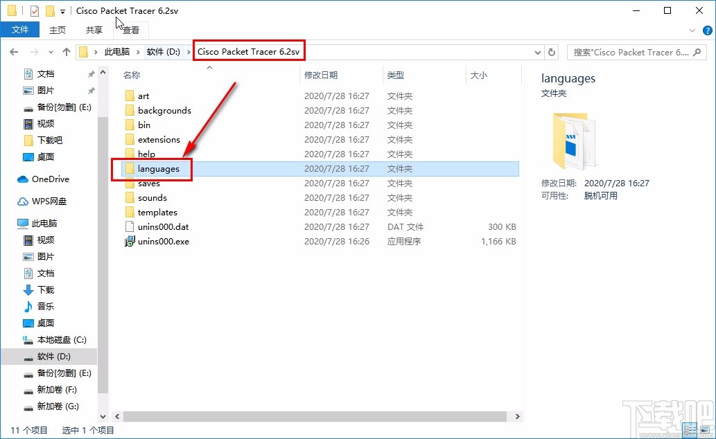 3.点击这个按钮之后,打开软件安装的目录文件夹,如下图中所示,然后我们点击切换到Cisco Packet Tracer 6.2sv这个根目录中,找到languages这个语言文件夹并打开。