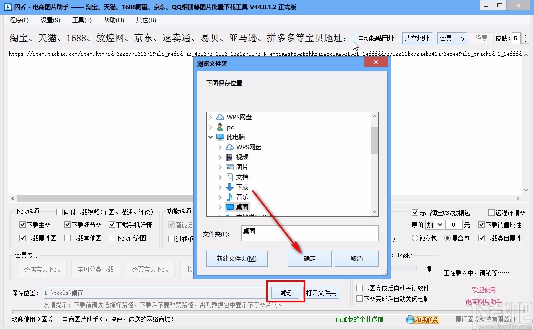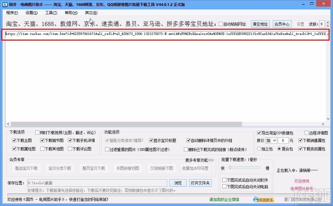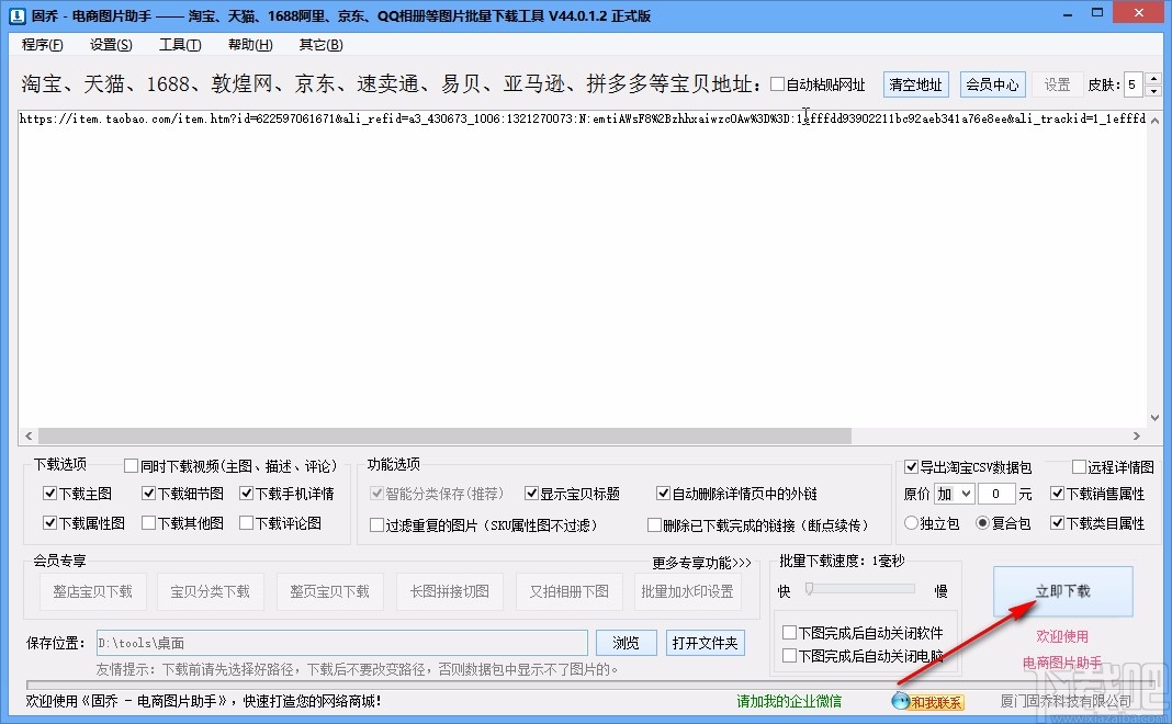 2.将需要下载图片的链接粘贴到软件界面之后,我们在下方的下载选项模块中,有很多的下载选项可以根据自己的需求进行选择,就比如选择下载主图、下载详情图等。