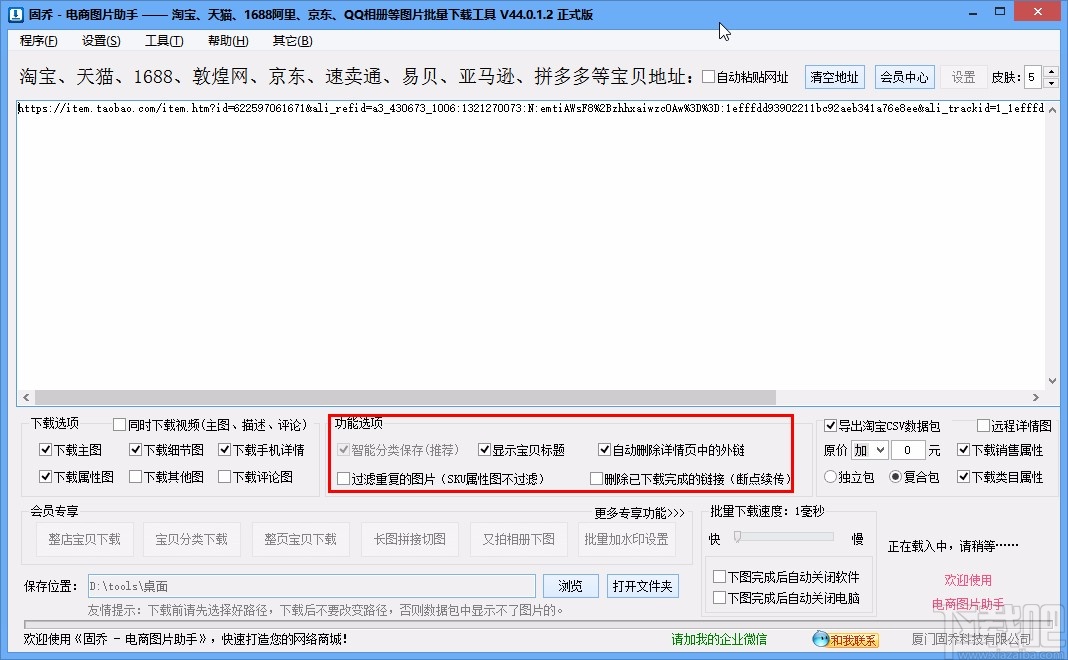 3.另外下一步是对右边的功能选项进行选择,可以选择下载一些宝贝标题,过滤重复的图片等等,也是可以根据用户自己的需求进行勾选即可。
