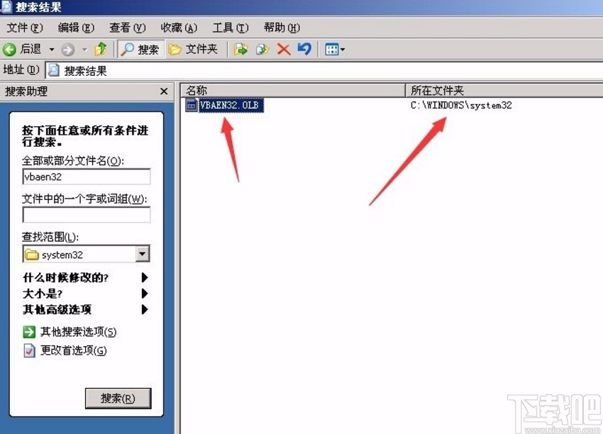 3.如果通过上述方法不能解决问题的话,我们可以直接进入到百度中搜索vbaen32.olb丢失关键词,然后就会出现一些下载链接。