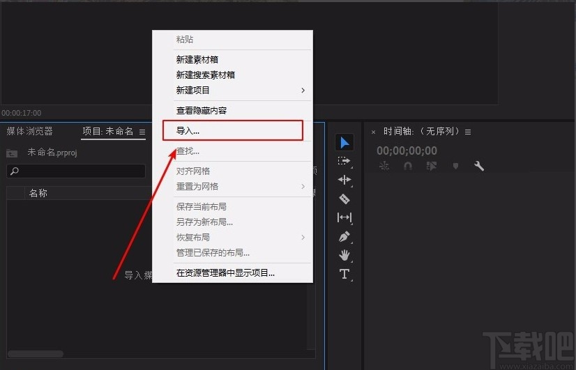 1.首先打开软件,在界面左下方找到“项目.未命名”选项,点击该选项后,在其下方的空白处右击鼠标,在出现的下拉框中点击“导入”按钮将需要添加字幕的视频文件导入到软件中。