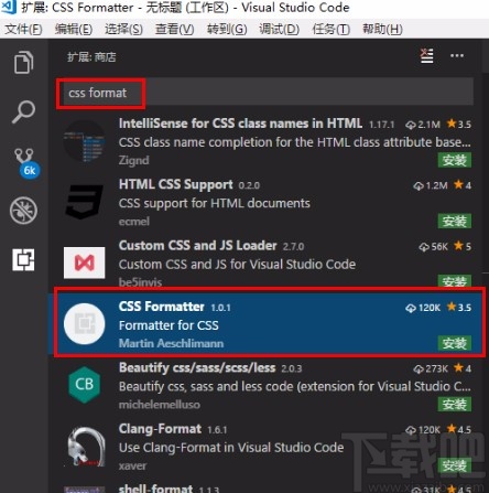 3.就比如我们常见的CSS代码不能整理格式,所以就直接搜索css format关键词,下载安装CSS Formatter插件。