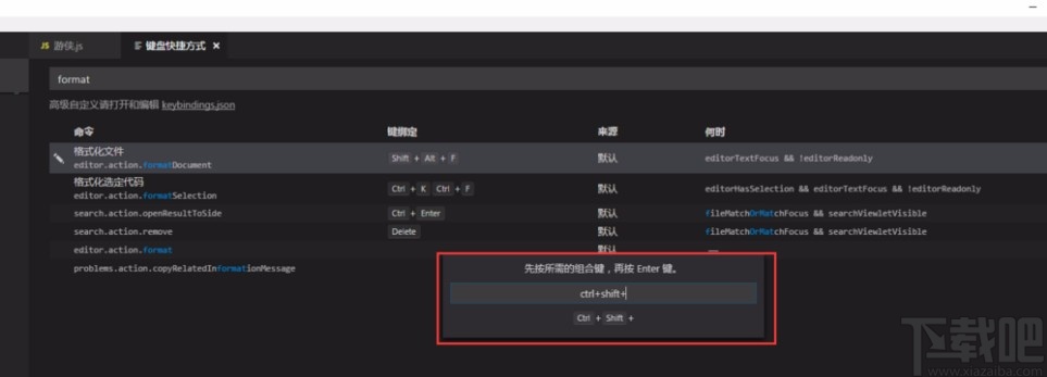 7.最后点击这个快捷键编辑图标,在出现的界面中按下自己想要设置的格式化代码快捷键,按下之后再按下键盘Enter键即可成功更改快捷键,我们就可以通过设置的这个快捷键来快速格式化代码了。