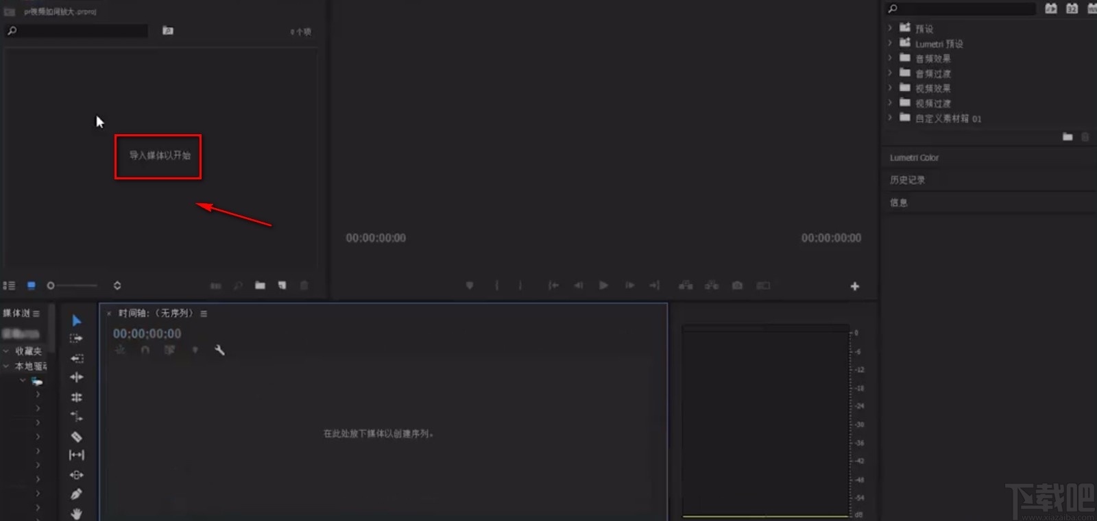 1.首先打开软件,在软件界面的左上方找到“导入媒体以开始”按钮,我们点击该按钮进入到文件添加页面。