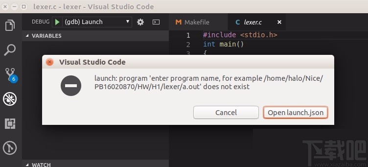 5.编译完成之后,我们切换到Debug界面,再点击编译运行的时候可能会出现文件不存在的提示,然后我们点击Open launch.json这个按钮。