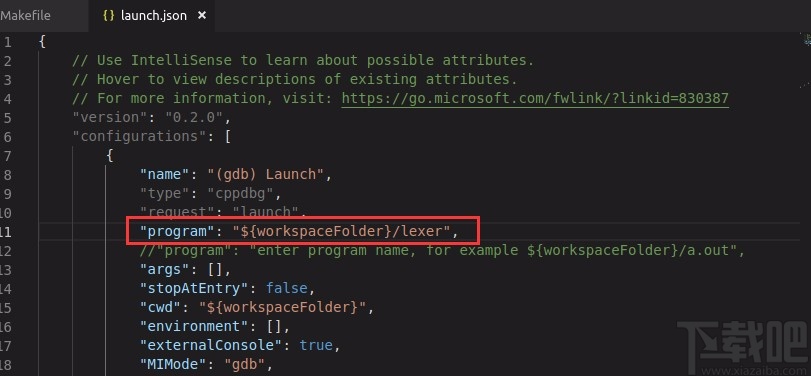 6.设置launch.json的program参数为当前路径下的待调试可执行文件。