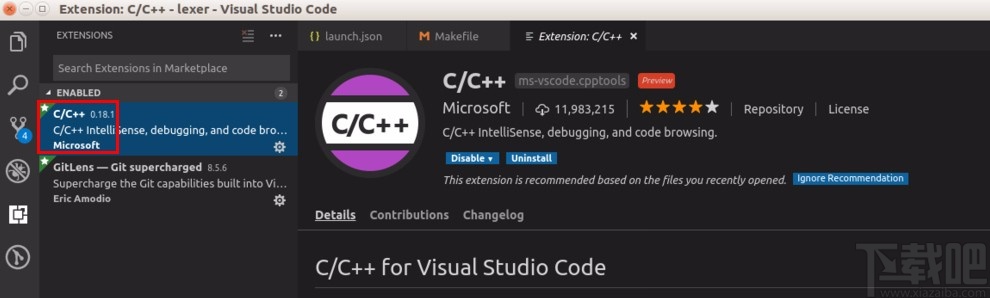 1.首先第一步我们打开软件之后,点击软件左边的扩展程序,在其中搜索名称为C/C++的插件,下载安装插件。