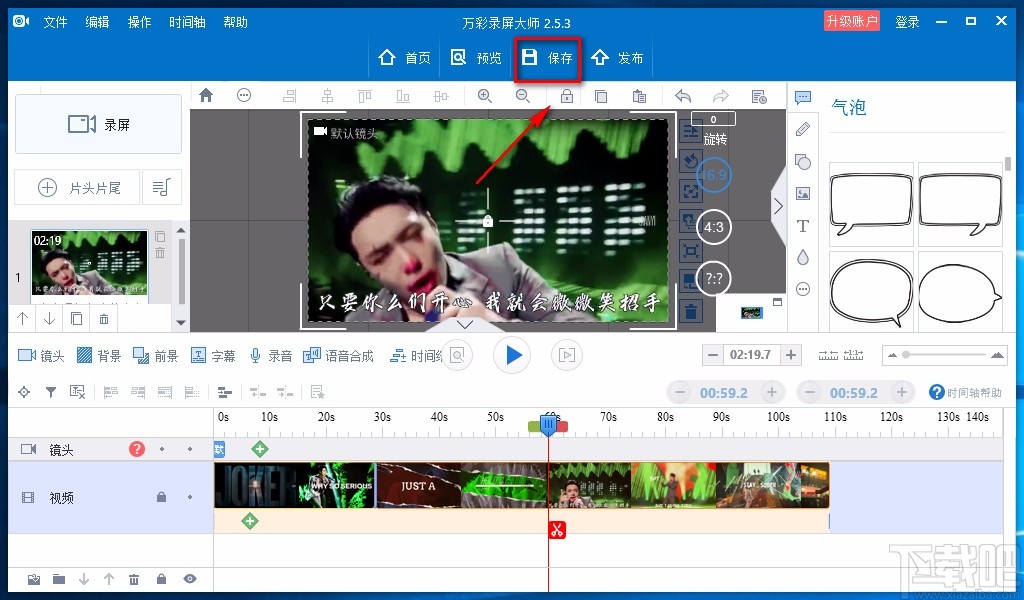 7.最后我们在界面上方找到“保存”按钮,点击该按钮就可以将删除片段后的视频导出软件并保存在电脑中。