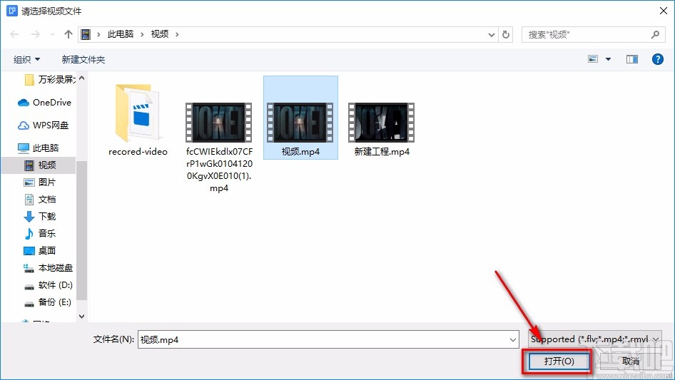 2.在文件添加页面中,我们选中需要删除片段的视频文件后,再点击页面右下角的“打开”按钮即可。
