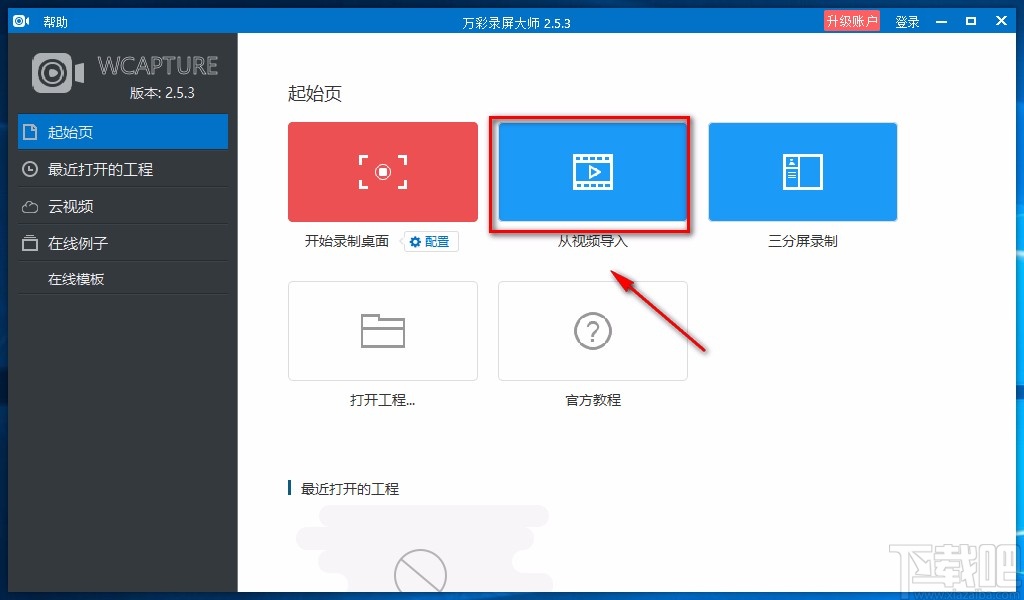 1.首先打开软件,在软件界面上找到“从视频导入”选项,我们点击该选项进入到文件添加页面。