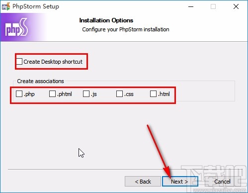 7.然后就来到创建桌面图标和创建关联文件类型的界面了,可以根据自己的需求来勾选这个创建关联的文件类型,然后点击下一步按钮。