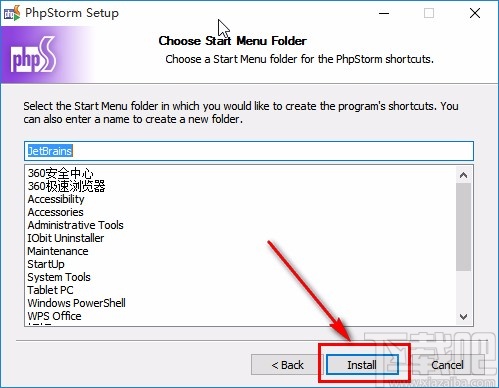 8.紧接着就来到最后一步了,也就是选择开始菜单文件夹的步骤,软件一般都会生成一个专属的文件夹,我们不做更改直接点击Install按钮即可开始安装软件。
