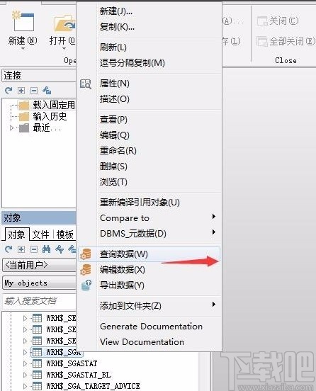 3.接着在详细信息列表中随意选择一张表,我们右击表会出现一个下拉框,在下拉框中点击“查询数据”选项。