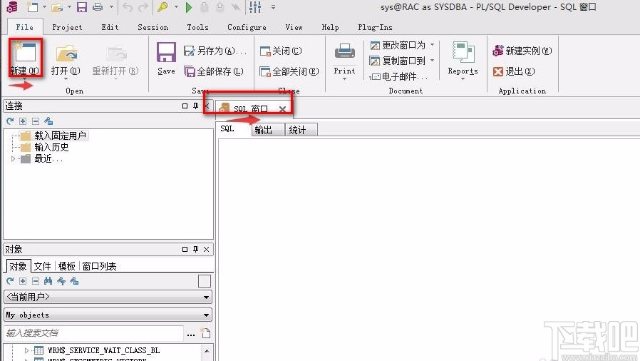 5.然后在页面左上方找到“新建”按钮,我们点击该按钮就可以新建一个SQL窗口,如下图所示。
