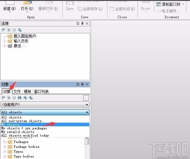 2.登陆成功后进入到软件浏览页面,在页面左下方找到“对象”选项,在该选项下方找到“My objects”并点击,下方就会出现很多的当前对象的详细信息。