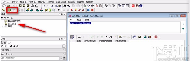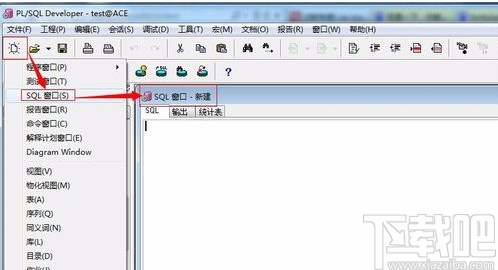 7.创建表后,我们可以点击左上角的第一个按钮,并在下拉框中点击“SQL窗口”选项,将SQL窗口打开。