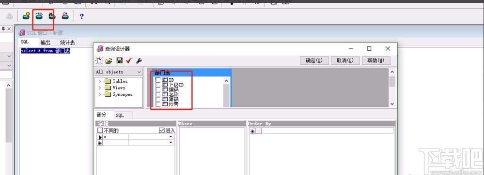 6.最后我们还可以在界面上方找到“查询设计器”按钮,点击该按钮会出现一个查询设计器窗口,在窗口中可以快速的查询表格属性。