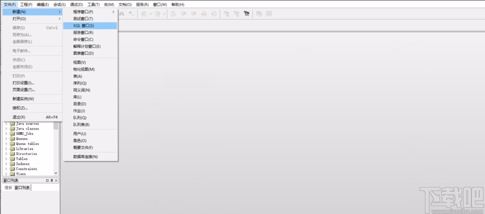 2.接着在软件主界面的左上角找到“文件”选项,点击该选项会出现一个下拉框,我们在下拉框中选择“新建”,并在出现的子下拉框中点击“SQL窗口”。