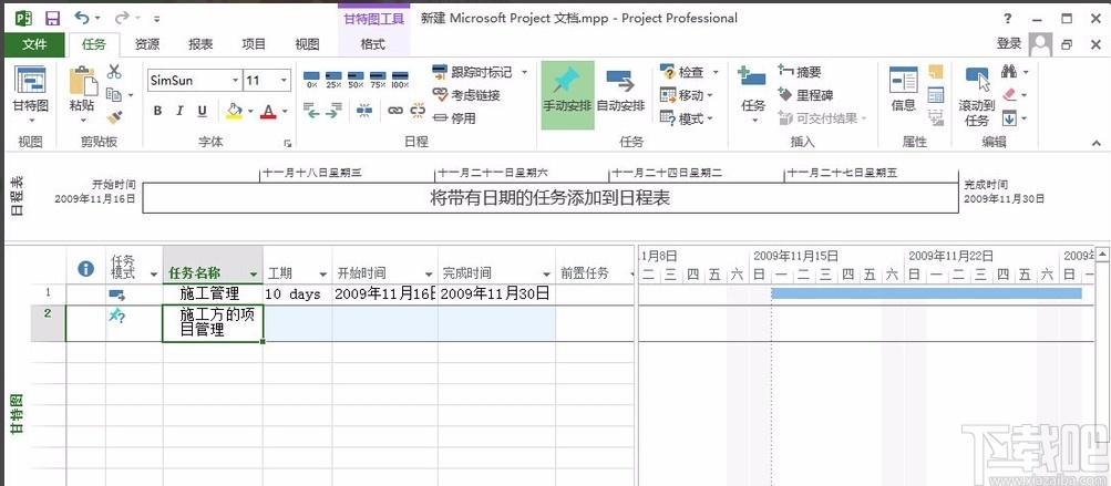 3.此外,我们也可以双击单元格,在弹出的任务信息界面中输入任务名称及其他详细信息。