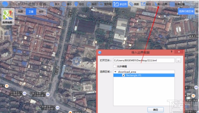 4.我们在软件中也可以导入便捷数据,点击右上方的导入边界之后,在出现的界面中选择文件和区域之后点击确定按钮进行导入即可。