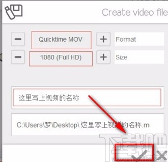 7.以上设置完毕后,我们在窗口右下角找到勾号图标按钮,点击该按钮就可以开始生成视频并将其导出软件了。