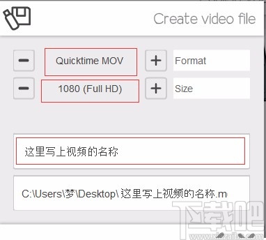6.接着在窗口下方还可以看到两个文本框,我们根据自己的需要在文本框中输入视频的名称以及视频的保存路径。