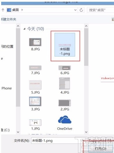 8.在文件添加页面中,我们找到刚刚制作的汉字图片并选中,再点击页面右下角的“打开”按钮即可。