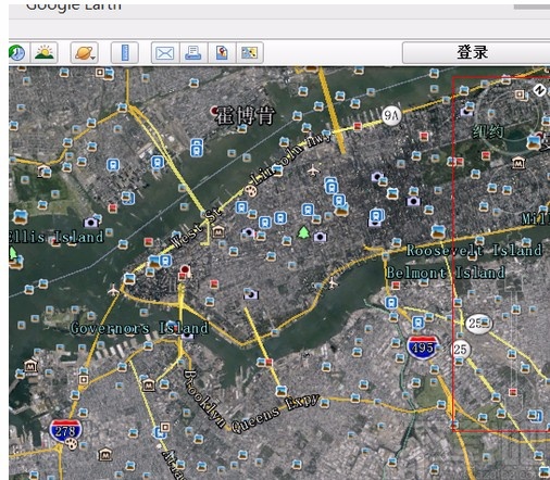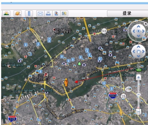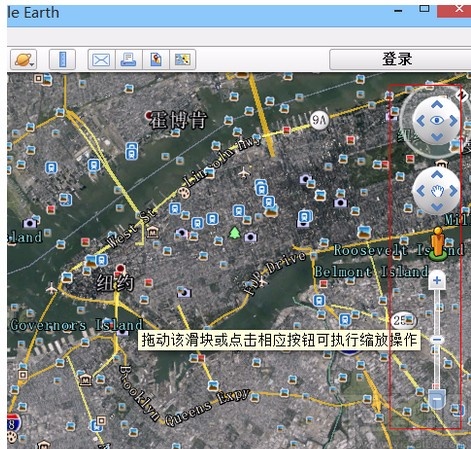 1.首先打开软件,在软件中找到需要看街景的城市,比如纽约;这时候我们可以发现,界面的右侧有一些透明的工具图标。