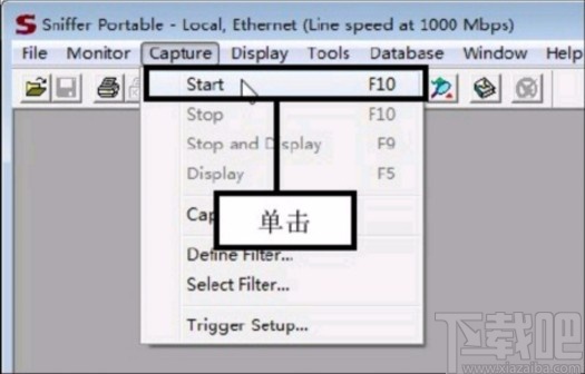 5.点击这个确定按钮之后,我们在界面上方点击Capture这个选项,在出现的菜单列表中选择Start这个开始选项就可以开始捕获操作了。