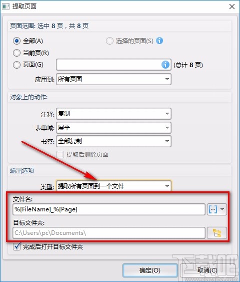 8.完成以上所有步骤后,我们在界面底部找到“确定”按钮,点击该按钮就可以成功提取页面并将其保存在指定的文件夹中。
