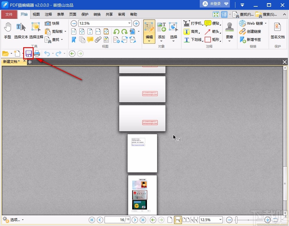 8.文件合并成功之后,就会自动生成一个新建文档,文档中的页面就是我们所选择的PDF文件合并的所有页面,顺序也是按照我们选择的顺序进行排列的,之后我们点击左上方的保存按钮。