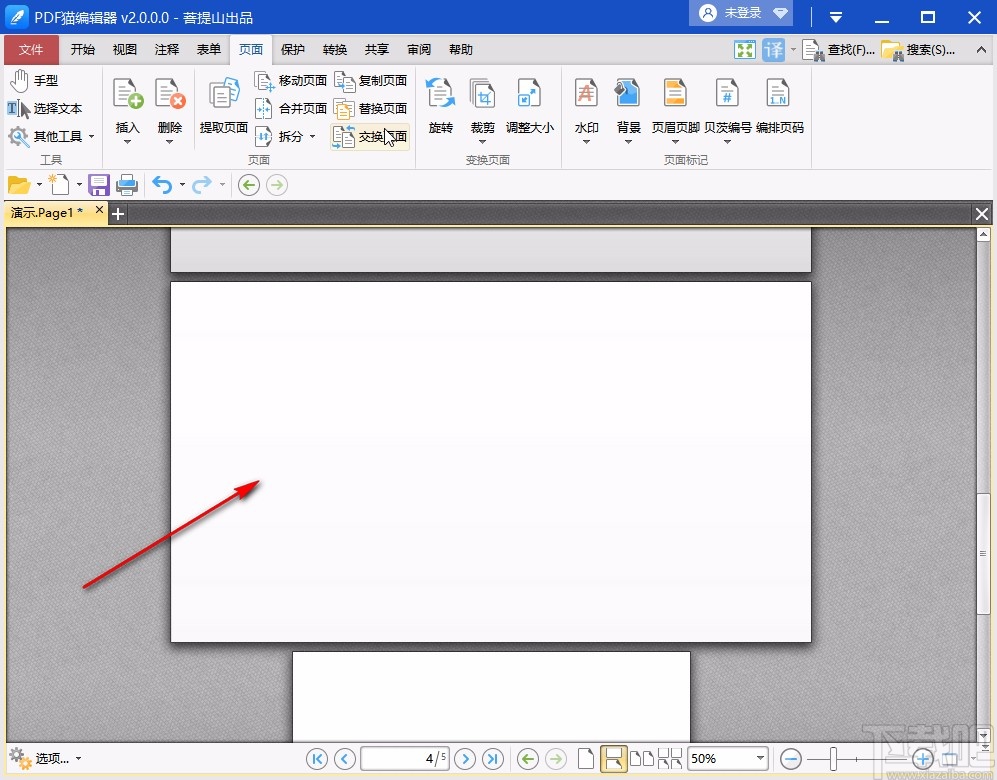 3.点击打开按钮将PDF文件添加到软件界面之后,我们点击上方的页面这个功能选项,切换到页面设置功能界面。