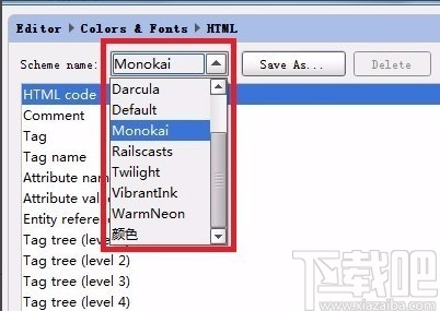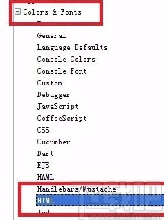 3.接着我们在下拉框中找到“Color&Fonts”选项并点击,其下方也会出现一个下拉框,我们在下拉框中点击“HTML”即可。