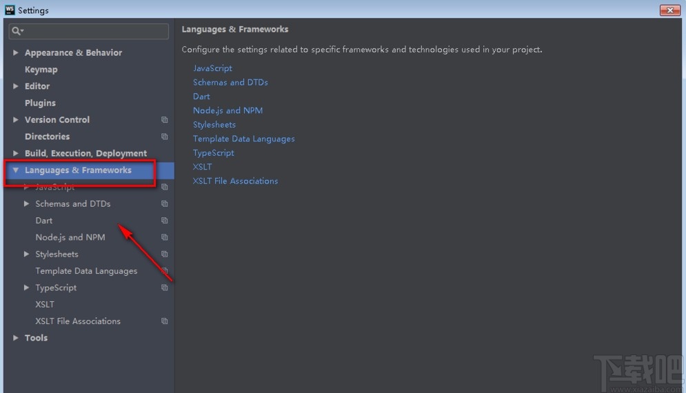 10.最后我们在界面左侧点击“Languages&Frameworks”,可以设置语言和选择项目的框架。
