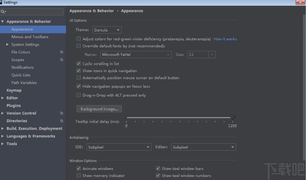 6.在设置窗口中,我们在窗口左侧找到“Appearance&Behavior”并点击,就可以在窗口右侧设置软件的外观。